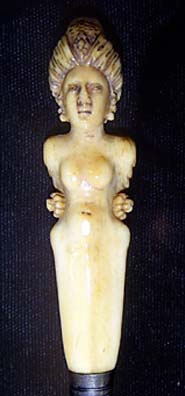 Detail of 17th Century European 2-tined fork handle. CAS 0389-2098.